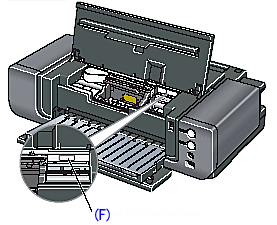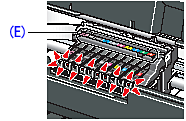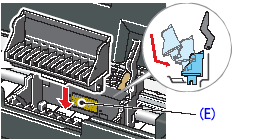 (E) 請參閱列印頭鎖定桿上的顏色指南。
