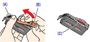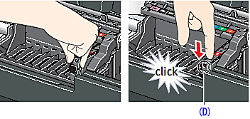 標記直到墨水盒「喀嚓」一聲到位,其指示燈隨即亮起紅色。