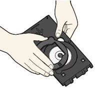 - 請拿 DVD/CD 的邊緣。請勿觸摸標籤面(列印面)或記錄面。