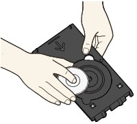 - 請勿弄髒或划傷 CD-R 托盤上的反射鏡。印表機可能無法識別裝入的 DVD/CD,或列印出的結果可能未對齊。如果 CD-R 托盤上的反射鏡變髒,用柔軟的乾布擦拭,小心不要划傷。