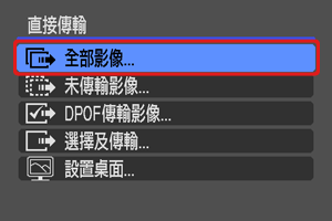 6. 相機的液晶螢幕上出現下列選單後,請選擇 [全部影像] (以下載記憶卡中記錄的所有影像)。