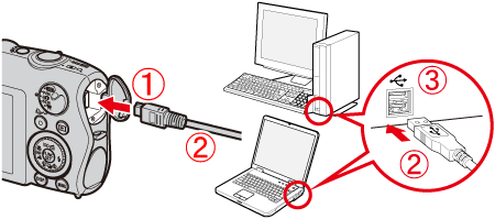 電腦的 USB 連接埠2. 按相機的 <Power> 按鈕。