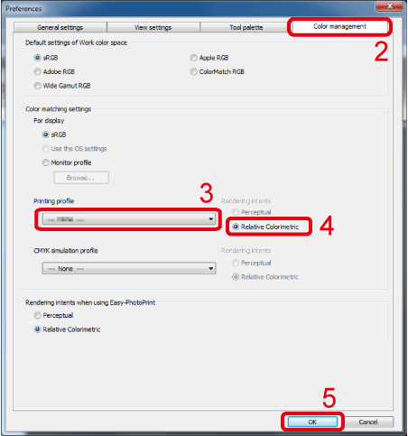 4. 從位於[打印設定檔(Printing profile)]右側的[色彩對應方式(Rendering intents)]中選擇一種色彩轉換方法。