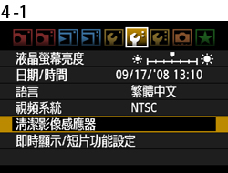 4-1. 轉動 <速控轉盤> 以選擇 [清潔影像感應器]。