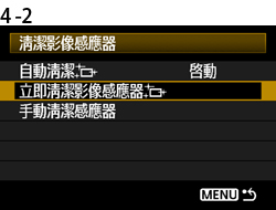 4-2. 按 <SET> 按鈕並轉動 <速控轉盤> 從出現的選單中選擇 [立即清潔影像感應器],然後再次按 <SET> 按鈕。