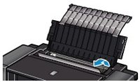 - 當從相容 PictBridge 的設備在 14" x 17" / 36 x 43 cm 以外的紙張上列印時,請在後端托盤上送紙。