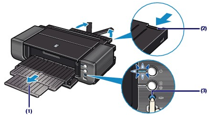 (1) 確定電源狀態顯示燈亮起,[前端送紙]按鈕快速閃爍。