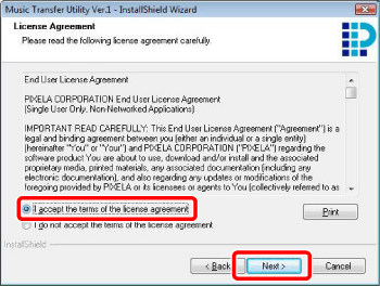 ImageMixer 3 SE Transfer Utility 安裝完成後,將開始安裝 Music Transfer Utility。