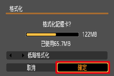 - 當執行低階格式化時,選擇 [低階格式化],然後左右按 <方向按鈕> 顯示 (