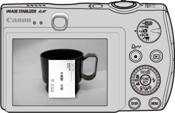 4. 保持半按 <快門按鈕>,移開名片。