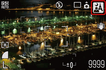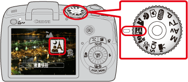 2. 設定<模式轉盤>為<夜景快拍> (