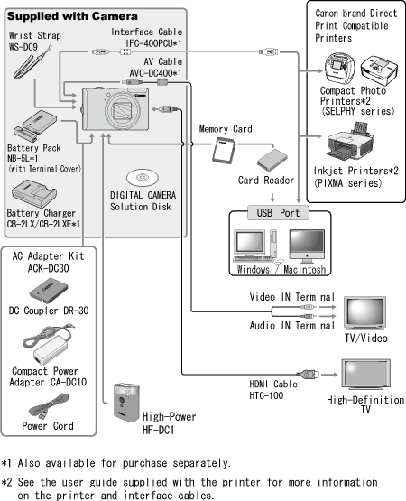 使用佳能原裝配件時,該產品可達到最佳性能。佳能對非原裝佳能配件的故障 (如電池洩漏與/或電池爆炸) 而導致本產品的損壞與/或意外,如火災等,不承擔任何責任。請注意,此保證不適用於非原裝佳能配件的故障,但是您可以請求付費維修。