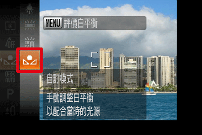 ![]() | 自訂模式 | 手動設定自訂白平衡。 |