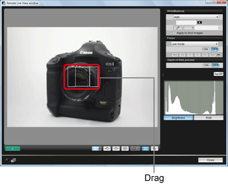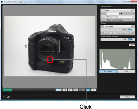 [遙控即時顯示視窗(Remote Live View window)]會根據對焦點位置的調整即時變更。