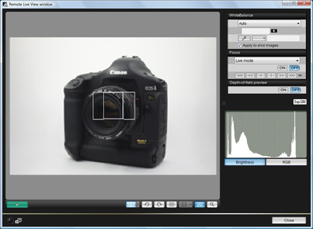 7. [遙控即時顯示拍攝(Remote Live View shooting)]視窗出現,檢視拍攝影像。