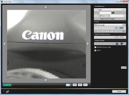 ]。 按兩下[放大檢視(Zoom View)] 視窗中的影像返回至 [遙控即時顯示視窗(Remote Live View window)]。