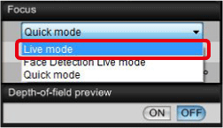 11. 當您進行到 Part I 的步驟 10 後,從[對焦(Focus)]清單方塊中選擇[即時模式(Live mode)]。