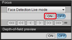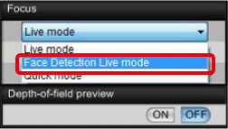 (臉部偵測)即時自動對焦模式下,影像可以自動對焦,方式與在相機上相同。11. 當您進行到 Part I 的步驟 10 後,從[對焦(Focus)]清單方塊中選擇[臉部偵測即時模式(Face Detection Live mode)]。