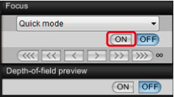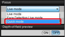11. 當您進行到 Part I 的步驟 10 後,從[對焦(Focus)]清單方塊中選擇[快速模式(Quick mode)]。