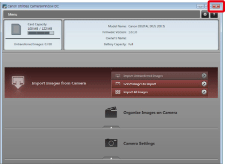 按一下 [從佳能相機下載影像 (Downloads Images From Canon Camera)]。