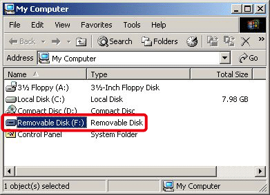 開啟[可移除式磁碟]。(本例中選擇的是 [可移除式磁碟 (F:)])