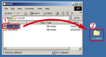 開啟[xxxCANON]資料夾,選擇您要複製的影像檔案,然後將其拖到目標資料夾進行複製。