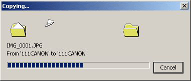 開啟[xxxCANON]資料夾,選擇您要複製的影像檔案,然後將其拖到目標資料夾進行複製。7. 出現下方螢幕後,複製開始。