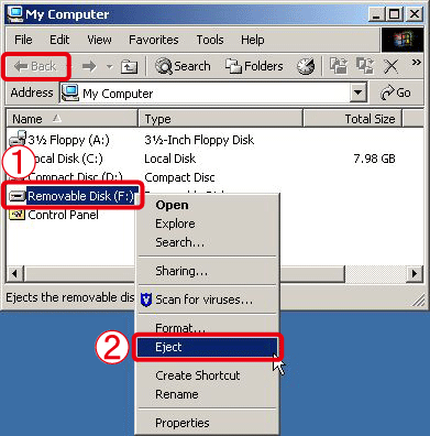 8. 複製完畢後,按[上一頁]多次以顯示步驟 5 中的[我的電腦]螢幕。