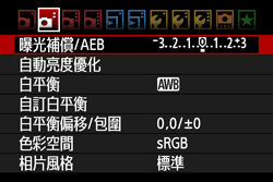 ] 設定頁下,選擇[曝光補償/AEB ],然後按 < SET >。