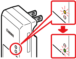 亮起橙色時電池正在充電。當充電完成時,指示燈變為綠色。