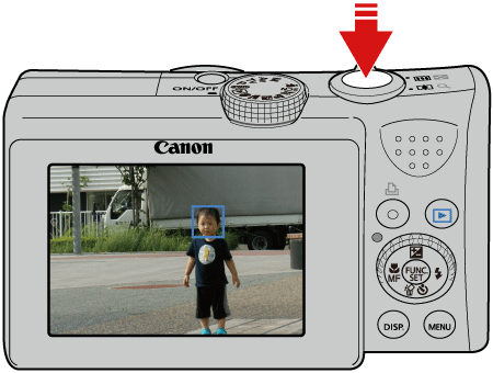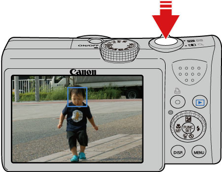 )出現在檢測到的臉部上。6. 半按<快門按鈕>。