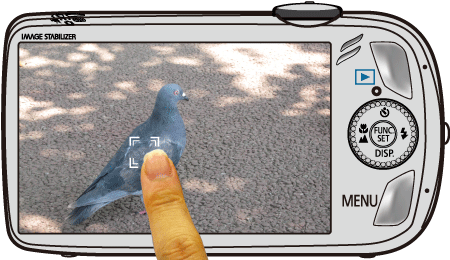 拍攝移動的動物或車輛時,您可以直接觸摸螢幕來檢測目標移動主體([觸控自動對焦]功能),以便持續自動調整目標主體的對焦和曝光。