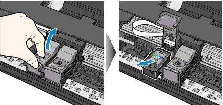 (1) 捏住舌片並開啟墨盒鎖蓋。