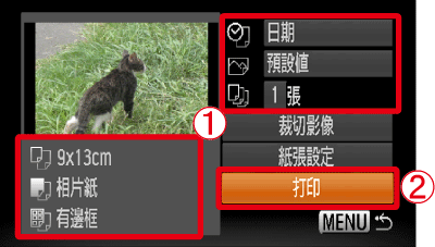 [打印],然後按相機的 <FUNC./SET> (