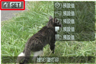 確定 [SET] 圖示出現在液晶螢幕的左上方後,按相機的 <FUNC./SET> (