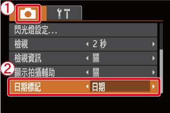 [日期標記] 為 [日期]或[日期與時間]。完成這些設定後,按下 <MENU> (