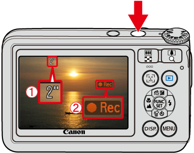 [Rec]出現在[液晶螢幕]上。一旦拍攝開始,將手指從<快門按鈕>鬆開。