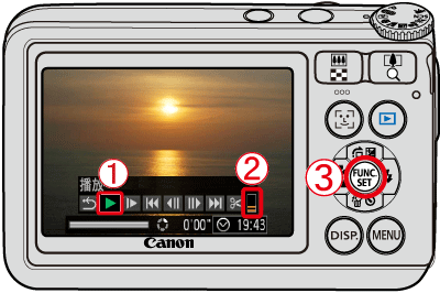 ) 按鈕播放短片。再次按 <FUNC./SET> (