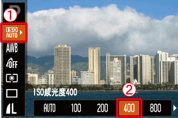 4. 如果顯示以下圖示,則表示設定完成 (如果 [ISO 感光度] 設定為 400)。