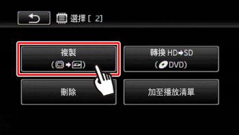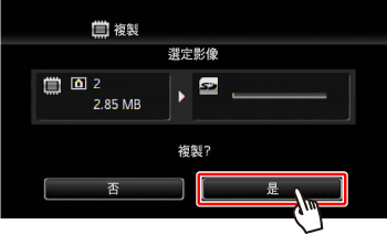 - 如果記憶卡上沒有足夠的空間,攝錄機會在停止操作前複製盡可能多的影像。