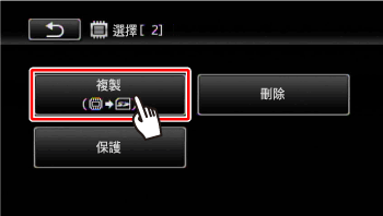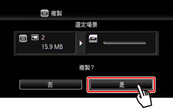 僅可以單向複製記錄:從內置記憶體到記憶卡。場景和影像將從所選的索引螢幕複製到記憶卡上相應的索引螢幕。
