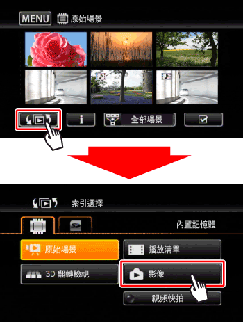 > 切換至影像播放模式。2. 開啟 [影像] 索引螢幕。