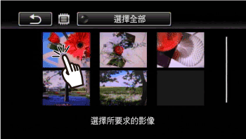 ]。再次點選所選影像可刪除核取記號。 - 要一次選擇全部影像:點選 [選擇全部],而不必逐一點選各個影像。(如果已單獨選擇某些影像,請預先刪除所有核取記號。)