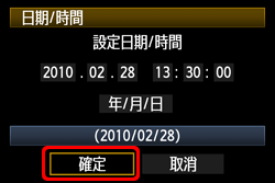 第一次開啟電源或日期/時間被重置時,將出現日期/時間設定螢幕。按以下步驟設定日期/時間。請注意:記錄到影像上的日期/時間取決於此處的日期/時間設定。務必正確設定日期/時間。