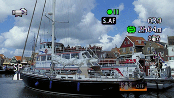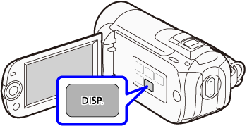 可以按攝錄機上的 <DISP.> 按鈕開啟/關閉液晶螢幕上的顯示 (顯示日期、相機資料 [光圈/快門速度] 以及電池資訊等資訊)。