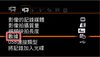 對於記錄的每個場景或影像,攝錄機都會保留數據 (記錄的日期/時間、有關相機設定的資訊等)。