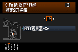 4. 按 <多功能控制器> 選擇 [2] [指定 SET 按鈕],然後按 <SET> 按鈕。