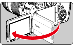 - 即時顯示拍攝或拍攝短片時,將液晶螢幕正對主體會在螢幕上顯示鏡面影像。