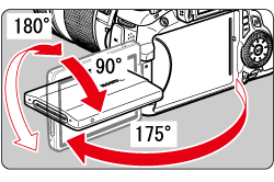 打開液晶螢幕後,您可設定選單功能、使用即時顯示拍攝、拍攝短片、播放影像及短片。您可變更液晶螢幕的方向及角度。