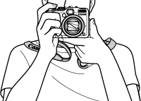 緊握相機兩側,手臂緊靠身體。確保手指不要阻擋 <閃光燈>。